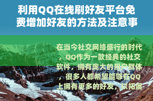 在当今社交网络盛行的时代,QQ作为一款经典的社交软件,拥有庞大的用户群体,很多人都希望能够在QQ上拥有更多的好友,以拓展自己的社交圈子,分享生活点滴,获取更多的信息和资源,而QQ在线刷好友平台免费的出现,为一些用户提供了一种增加好友数量的途径。