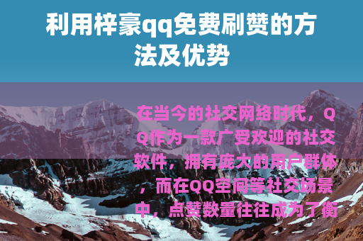 在当今的社交网络时代,QQ作为一款广受欢迎的社交软件,拥有庞大的用户群体,而在QQ空间等社交场景中,点赞数量往往成为了衡量一个人受欢迎程度或内容热度的重要指标之一,梓豪qq免费刷赞服务的出现,为许多用户提供了一种快速提升点赞数的途径。