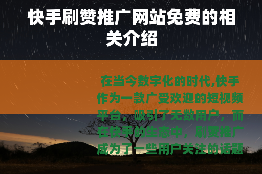 在当今数字化的时代,快手作为一款广受欢迎的短视频平台,吸引了无数用户,而在快手的生态中,刷赞推广成为了一些用户关注的话题,其中免费的快手刷赞推广网站也引起了不少人的兴趣。