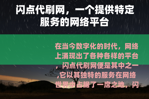 在当今数字化的时代,网络上涌现出了各种各样的平台,闪点代刷网便是其中之一,它以其独特的服务在网络世界中占据了一席之地。
