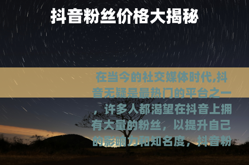 在当今的社交媒体时代,抖音无疑是最热门的平台之一,许多人都渴望在抖音上拥有大量的粉丝,以提升自己的影响力和知名度,抖音粉丝到底多少钱呢?