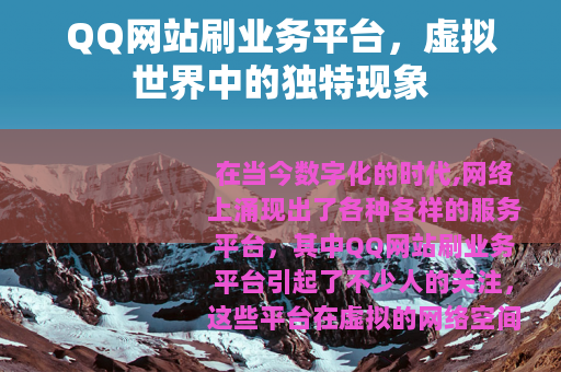 在当今数字化的时代,网络上涌现出了各种各样的服务平台,其中QQ网站刷业务平台引起了不少人的关注,这些平台在虚拟的网络空间中,为用户提供了一系列与QQ相关的业务刷量服务,在一定程度上满足了部分用户对于QQ账号数据增长的需求。