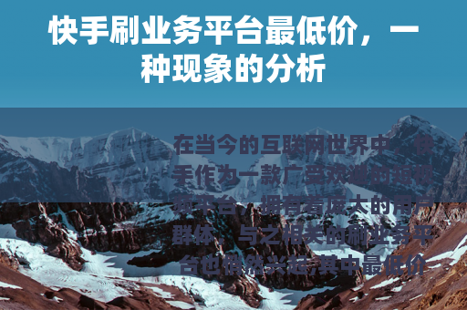 在当今的互联网世界中,快手作为一款广受欢迎的短视频平台,拥有着庞大的用户群体,与之相关的刷业务平台也悄然兴起,其中最低价的刷业务平台更是吸引了不少人的关注。