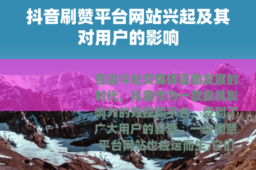 在当今社交媒体蓬勃发展的时代,抖音作为一款极具影响力的短视频平台,受到了广大用户的喜爱,一些刷赞平台网站也应运而生,它们与抖音之间产生了千丝万缕的联系。