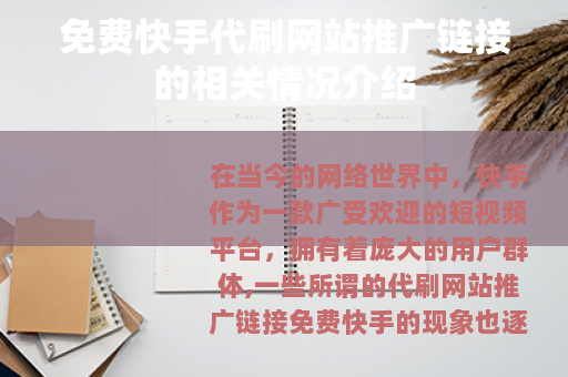 在当今的网络世界中,快手作为一款广受欢迎的短视频平台,拥有着庞大的用户群体,一些所谓的代刷网站推广链接免费快手的现象也逐渐进入了人们的视野。