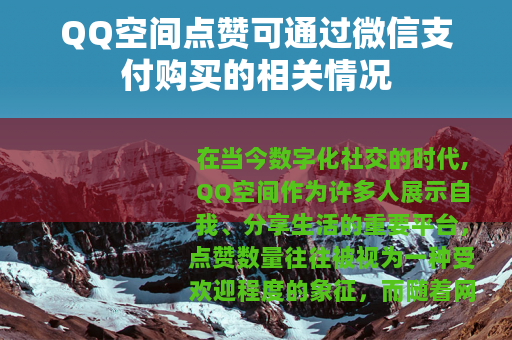 在当今数字化社交的时代,QQ空间作为许多人展示自我、分享生活的重要平台,点赞数量往往被视为一种受欢迎程度的象征,而随着网络服务的不断发展,出现了一种现象,那就是可以通过微信支付来购买QQ空间的点赞。