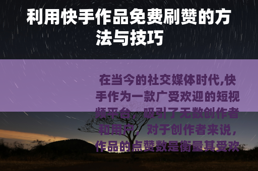 在当今的社交媒体时代,快手作为一款广受欢迎的短视频平台,吸引了无数创作者和用户,对于创作者来说,作品的点赞数是衡量其受欢迎程度和影响力的重要指标之一,很多人都希望能够找到有效的方法来增加自己快手作品的点赞数,而免费刷赞就成为了一个备受关注的话题。