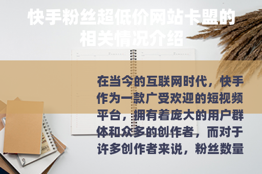 在当今的互联网时代,快手作为一款广受欢迎的短视频平台,拥有着庞大的用户群体和众多的创作者,而对于许多创作者来说,粉丝数量往往是衡量其在平台上影响力的一个重要指标,一些快手粉丝超低价网站卡盟便应运而生。