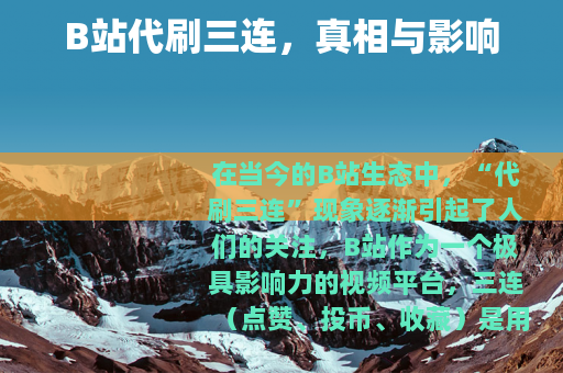 在当今的B站生态中,“代刷三连”现象逐渐引起了人们的关注。