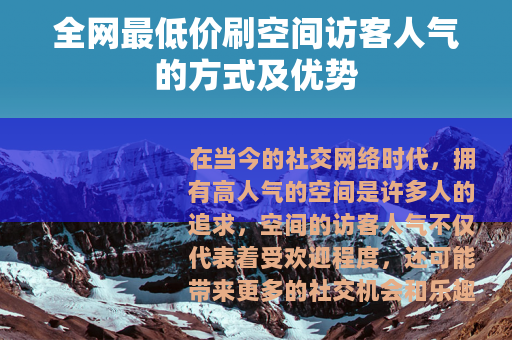 在当今的社交网络时代,拥有高人气的空间是许多人的追求,空间的访客人气不仅代表着受欢迎程度,还可能带来更多的社交机会和乐趣,而全网最低价刷空间访客人气的服务,正逐渐成为一种热门的选择。