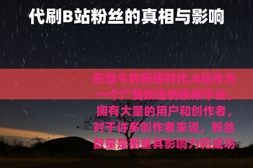 在当今的网络时代,B站作为一个广受欢迎的视频平台,拥有大量的用户和创作者,对于许多创作者来说,粉丝数量是衡量其影响力和成功的一个重要指标,在追求粉丝增长的过程中,出现了一种所谓的“代刷B站粉丝”的现象。