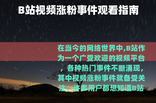 在当今的网络世界中,B站作为一个广受欢迎的视频平台,各种热门事件不断涌现,其中视频涨粉事件就备受关注,许多用户都想知道B站视频涨粉事件在哪看,以便能够及时了解相关动态,学习一些成功的经验或者避免一些可能出现的问题。