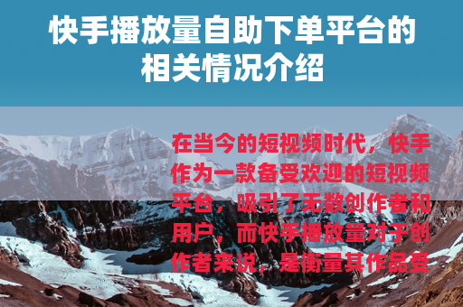 在当今的短视频时代,快手作为一款备受欢迎的短视频平台,吸引了无数创作者和用户,而快手播放量对于创作者来说,是衡量其作品受欢迎程度的一个重要指标,快手播放量自助下单平台应运而生。