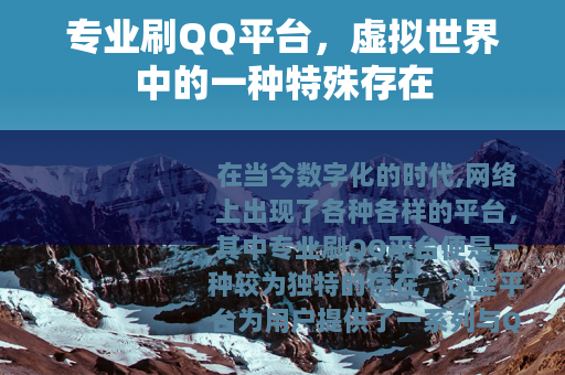 在当今数字化的时代,网络上出现了各种各样的平台,其中专业刷QQ平台便是一种较为独特的存在,这些平台为用户提供了一系列与QQ相关的特殊服务,在虚拟社交的领域中占据了一席之地。