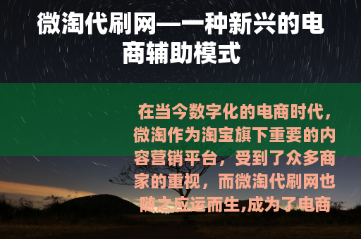 微淘代刷网作为电商领域的一个新兴现象,既有着广阔的发展前景,也面临着诸多的挑战和问题,只有商家、平台和消费者共同关注和努力,才能让它在电商的浪潮中稳健前行,实现其自身的价值和意义,同时也为电商行业的发展注入新的活力和动力。 能满足你的需求,你可以根据实际情况进行调整和修改,需要注意的是,微淘代刷网的一些操作可能存在违反平台规定的情况,在实际应用中要确保遵守相关规则和法律法规。