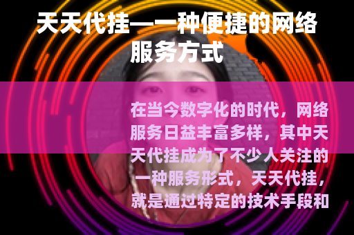 在当今数字化的时代,网络服务日益丰富多样,其中天天代挂成为了不少人关注的一种服务形式,天天代挂,就是通过特定的技术手段和平台,帮助用户在一些需要持续在线或进行特定操作的网络应用中实现自动挂机的功能。