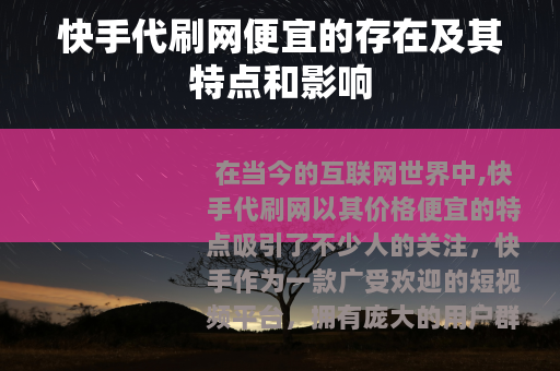 在当今的互联网世界中,快手代刷网以其价格便宜的特点吸引了不少人的关注,快手作为一款广受欢迎的短视频平台,拥有庞大的用户群体,而与之相关的代刷网也应运而生。