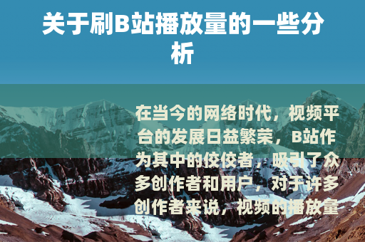 在当今的网络时代,视频平台的发展日益繁荣,B站作为其中的佼佼者,吸引了众多创作者和用户,对于许多创作者来说,视频的播放量是衡量其作品受欢迎程度的一个重要指标,有些人可能会试图寻找一些不正当的方法来提高播放量,其中就包括刷播放量的行为。