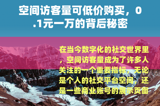在当今数字化的社交世界里,空间访客量成为了许多人关注的一个重要指标,无论是个人的社交平台空间,还是一些商业账号的展示页面,较高的访客量往往意味着更多的关注和可能带来的各种机会,而最近,一种声称0.1元就能买到一万空间访客量的现象悄然兴起,引发了不少人的兴趣和讨论。