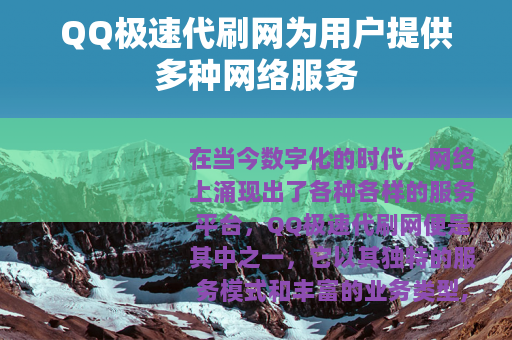 在当今数字化的时代,网络上涌现出了各种各样的服务平台,QQ极速代刷网便是其中之一,它以其独特的服务模式和丰富的业务类型,吸引了众多用户的关注。