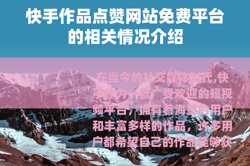 在当今的社交媒体时代,快手作为一款广受欢迎的短视频平台,拥有着海量的用户和丰富多样的作品,许多用户都希望自己的作品能够获得更多的点赞,以提高作品的曝光度和影响力,而快手作品点赞网站免费平台也随之应运而生。
