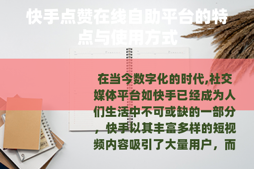 在当今数字化的时代,社交媒体平台如快手已经成为人们生活中不可或缺的一部分,快手以其丰富多样的短视频内容吸引了大量用户,而点赞则是用户表达喜爱和支持的一种重要方式,随着需求的增长,快手点赞在线自助平台应运而生。