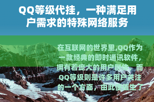 在互联网的世界里,QQ作为一款经典的即时通讯软件,拥有着庞大的用户群体,而QQ等级则是许多用户关注的一个方面,由此便催生了QQ等级代挂这一服务。