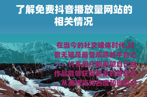 在当今的社交媒体时代,抖音无疑是最受欢迎的平台之一,许多用户都希望自己的作品能够获得更多的播放量,从而提高知名度和影响力,在这种需求下,免费抖音播放量网站应运而生。