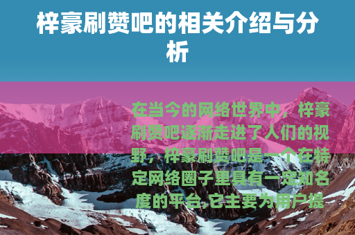 在当今的网络世界中,梓豪刷赞吧逐渐走进了人们的视野,梓豪刷赞吧是一个在特定网络圈子里具有一定知名度的平台,它主要为用户提供刷赞等相关服务。