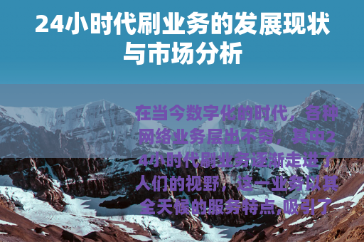在当今数字化的时代,各种网络业务层出不穷,其中24小时代刷业务逐渐走进了人们的视野,这一业务以其全天候的服务特点,吸引了众多有相关需求的用户。