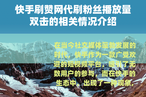 在当今社交媒体蓬勃发展的时代,快手作为一款广受欢迎的短视频平台,吸引了无数用户的参与,而在快手的生态中,出现了一种现象,那就是快手刷赞网代刷粉丝播放量双击等服务的存在。