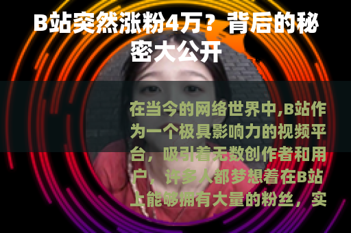 在当今的网络世界中,B站作为一个极具影响力的视频平台,吸引着无数创作者和用户,许多人都梦想着在B站上能够拥有大量的粉丝,实现自己的创作价值和影响力,而当看到有人在B站突然涨粉4万时,相信很多人都会感到好奇,这背后究竟有着怎样的故事呢?