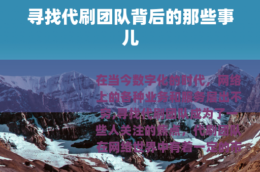 在当今数字化的时代,网络上的各种业务和服务层出不穷,寻找代刷团队成为了一些人关注的焦点。