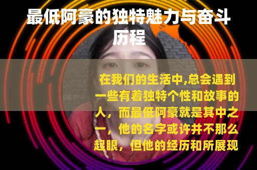 在我们的生活中,总会遇到一些有着独特个性和故事的人,而最低阿豪就是其中之一,他的名字或许并不那么起眼,但他的经历和所展现出的特质却让人印象深刻。