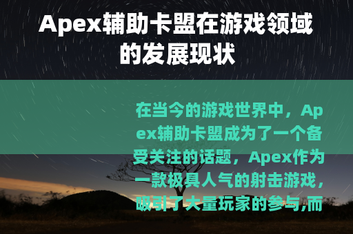 在当今的游戏世界中,Apex辅助卡盟成为了一个备受关注的话题,Apex作为一款极具人气的射击游戏,吸引了大量玩家的参与,而与之相关的辅助卡盟也应运而生。
