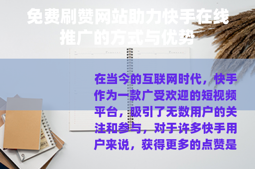 在当今的互联网时代,快手作为一款广受欢迎的短视频平台,吸引了无数用户的关注和参与,对于许多快手用户来说,获得更多的点赞是提升自己作品影响力和知名度的重要途径之一,而免费刷赞网站的出现,为快手用户提供了一种新的推广方式,具有诸多值得探讨的方面。