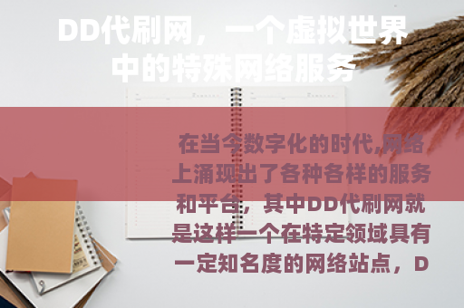 在当今数字化的时代,网络上涌现出了各种各样的服务和平台,其中DD代刷网就是这样一个在特定领域具有一定知名度的网络站点。