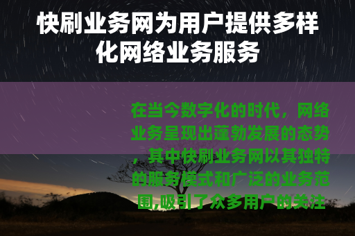 在当今数字化的时代,网络业务呈现出蓬勃发展的态势,其中快刷业务网以其独特的服务模式和广泛的业务范围,吸引了众多用户的关注。