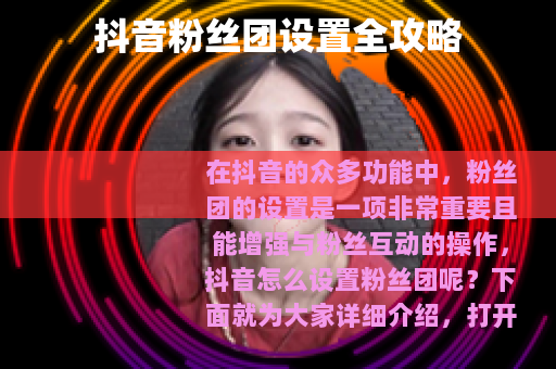 在抖音的众多功能中,粉丝团的设置是一项非常重要且能增强与粉丝互动的操作,抖音怎么设置粉丝团呢?下面就为大家详细介绍。