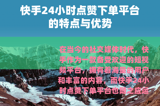 在当今的社交媒体时代,快手作为一款备受欢迎的短视频平台,拥有着海量的用户和丰富的内容,而快手24小时点赞下单平台也随之应运而生,为众多用户提供了一种独特的服务体验。