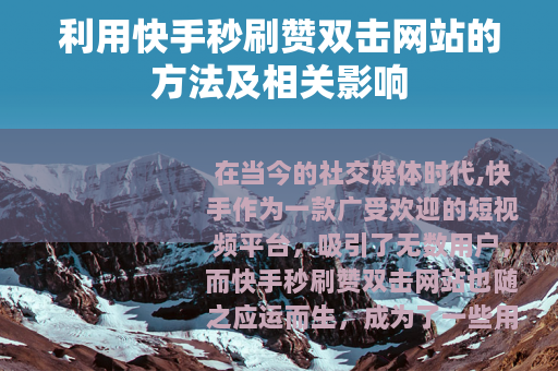 在当今的社交媒体时代,快手作为一款广受欢迎的短视频平台,吸引了无数用户,而快手秒刷赞双击网站也随之应运而生,成为了一些用户关注的焦点。