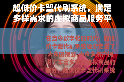 超低价卡盟代刷系统作为一种新兴的虚拟商品服务平台,以其超低价、多样化的服务和便捷的操作模式,为广大用户在游戏、社交媒体、电商等多个领域提供了有力的支持和帮助,它在满足用户需求、提升用户体验的同时,也为相关行业的发展注入了新的活力和动力,随着市场的不断发展和完善,相信超低价卡盟代刷系统将会在未来的数字经济时代中发挥更加重要的作用,为用户带来更多的价值和惊喜。