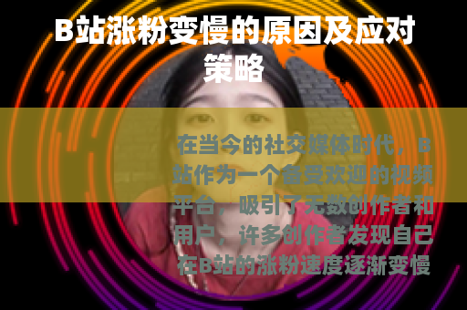 在当今的社交媒体时代,B站作为一个备受欢迎的视频平台,吸引了无数创作者和用户,许多创作者发现自己在B站的涨粉速度逐渐变慢,这让他们感到困惑和焦虑,本文将深入探讨B站涨粉变慢的原因,并提供一些有效的应对策略。 竞争的加剧是导致B站涨粉变慢的一个重要因素,随着越来越多的人涌入B站创作,平台上的内容数量呈爆炸式增长,在海量的视频中,要让自己的作品脱颖而出变得越来越困难,用户的注意力被分散在各种类型的优质内容之间,这使得新创作者获取粉丝的难度大大增加。