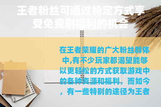 在王者荣耀的广大粉丝群体中,有不少玩家都渴望能够以更轻松的方式获取游戏中的各种资源和福利,而如今,有一些特别的途径为王者粉丝提供了免费刷的机会。