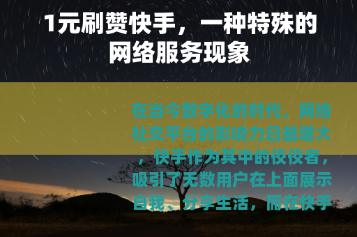 在当今数字化的时代,网络社交平台的影响力日益增大,快手作为其中的佼佼者,吸引了无数用户在上面展示自我、分享生活,而在快手的生态中,出现了一种备受关注的现象,那就是1元刷赞快手的服务。