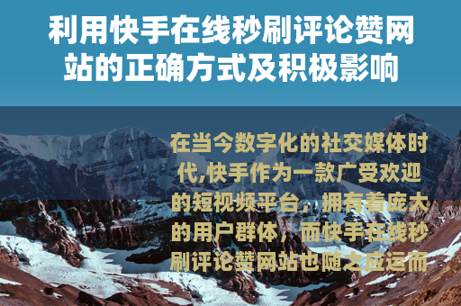 在当今数字化的社交媒体时代,快手作为一款广受欢迎的短视频平台,拥有着庞大的用户群体,而快手在线秒刷评论赞网站也随之应运而生,成为了许多用户关注的焦点。