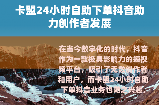 在当今数字化的时代,抖音作为一款极具影响力的短视频平台,吸引了无数创作者和用户,而卡盟24小时自助下单抖音业务也随之兴起,为众多抖音用户提供了一种新的助力方式。