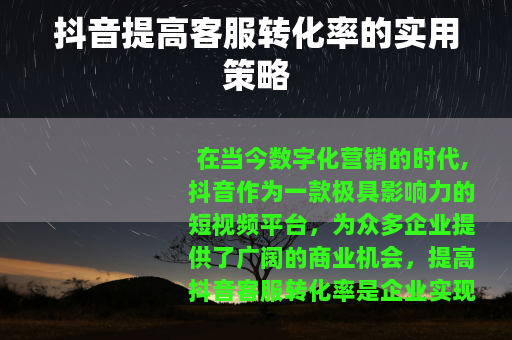 在当今数字化营销的时代,抖音作为一款极具影响力的短视频平台,为众多企业提供了广阔的商业机会,提高抖音客服转化率是企业实现盈利增长的关键环节之一。
