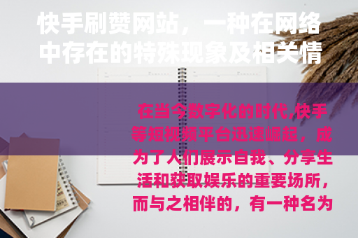 在当今数字化的时代,快手等短视频平台迅速崛起,成为了人们展示自我、分享生活和获取娱乐的重要场所,而与之相伴的,有一种名为快手刷赞网站的事物也逐渐进入了大众的视野。