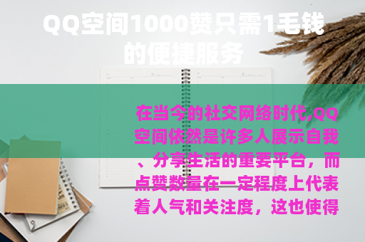 市场上出现了一种声称QQ空间1000赞只需1毛钱的服务,这种服务为那些渴望在QQ空间获得高人气的用户提供了一种看似便捷的途径,对于很多普通用户来说,通过自己的日常社交圈子去积累1000个赞可能需要花费不少时间和精力,而这种付费点赞的方式则可以在短时间内让自己的动态点赞数迅速飙升。